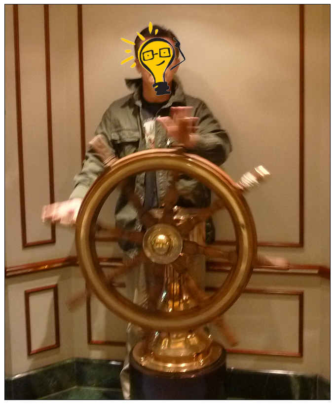吃盛装晚餐之前,我们抓紧享受了一会便装在船上闲逛,看到了这个樱桃木做的主舵盘,可能是为了保持历史的原汁原味,这个舵盘和泰坦尼克号上白胡子老船长拼了老命左满舵想避开冰山的主舵一摸一样。